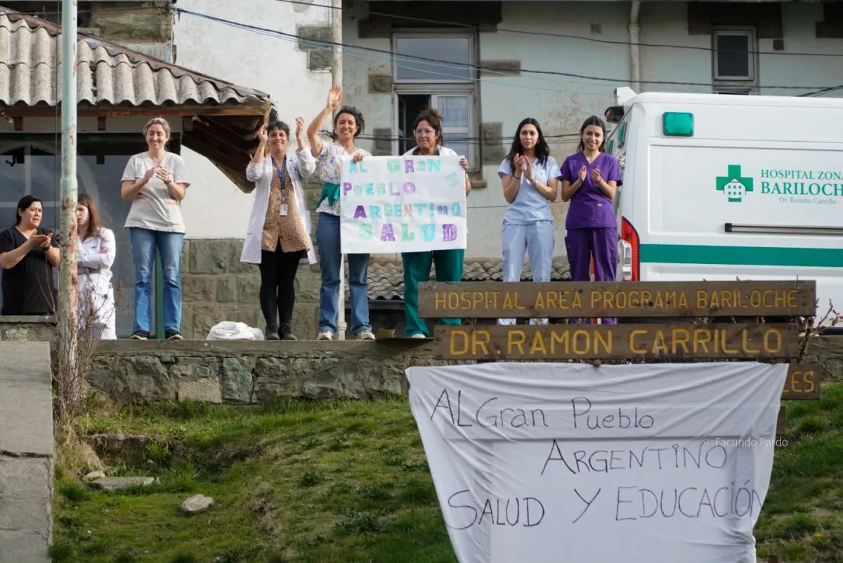 En Bariloche, el punto de convergencia para iniciar la marcha fue el Hospital Zonal “Dr. Ramón Carrillo”. La elección de ese sitio consignaba que el reclamo alcanzaba al sector de la salud. Justamente, del cartel ubicado en el patio externo delantero de esa institución, colgaba una pancarta con la leyenda: “Al gran pueblo argentino, salud y educación”. Y varios de los mensajes presentados en cartones rotulados a mano exteriorizaban el apoyo a una entidad que aúna un respaldo popular que se siente en todos los rincones del país: el Garrahan.