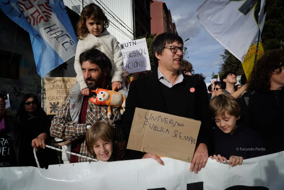 Antes de empezar la caminata, el vicerrector de la sede Andina de la Universidad Nacional de Río Negro, Diego Aguiar, decía: “Estamos con mucha expectativa de que finalmente la ley quede firme y, a partir de eso, tener una previsibilidad para terminar bien las clases de este año, que los laboratorios tengan los insumos para poder hacer investigaciones, que continúen los proyectos de extensión”.