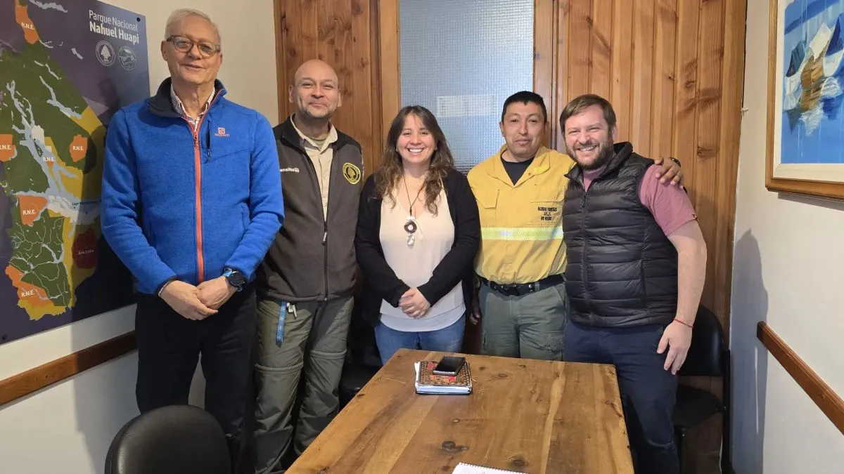 El encuentro reunió a la Subsecretaria de Recursos Forestales, Claudia Contreras; el titular del SPLIF, Orlando Báez; el Director de la Dirección de Lucha Contra Incendios Forestales y Emergencias de Nación, Ariel Amtahuer; el Intendente del Parque Nacional Nahuel Huapi, Dámaso Larraburu, y el Coordinador de Conservación y Uso Público del mismo parque, Mariano Dalla Cia.