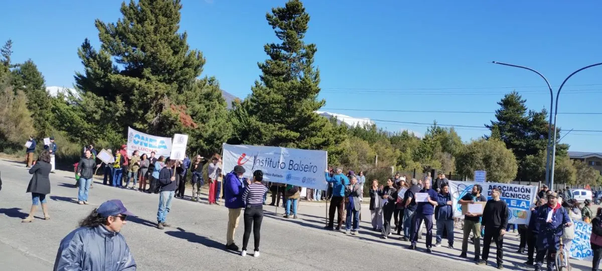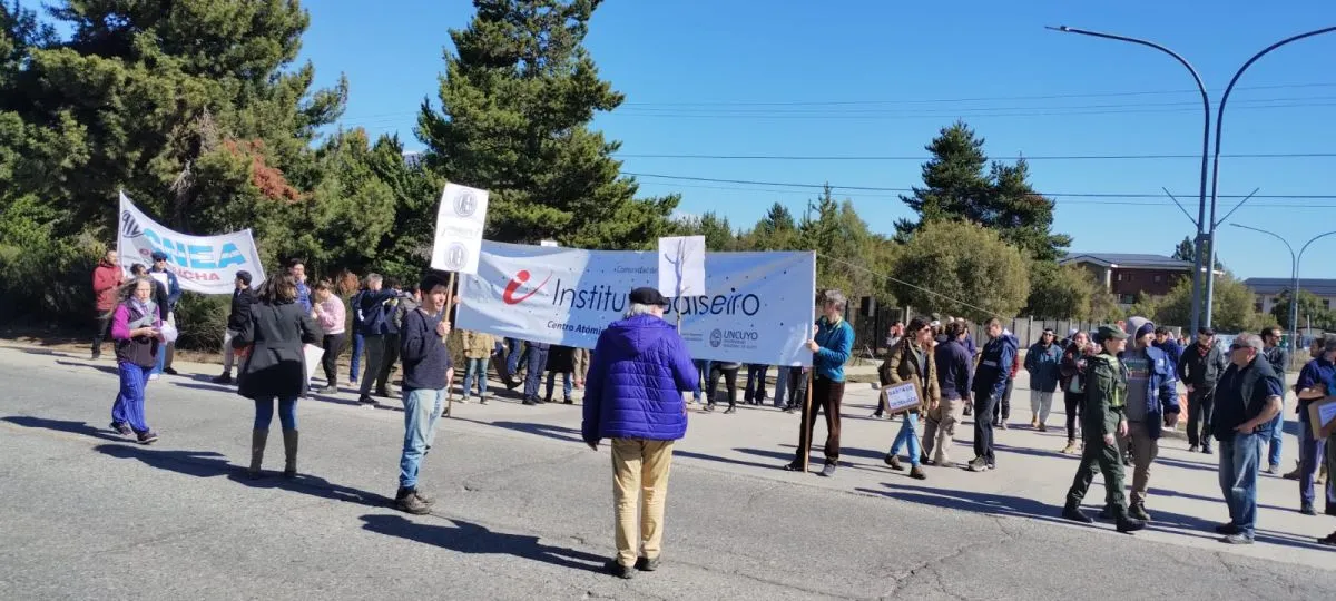 En el marco de la protesta a nivel nacional, este jueves trabajadores del Centro Atómico Bariloche, de la Comisión Nacional de Energía Atómica, Conicet e Instituto Balseiro, así como de todos los centros atómicos del país, se movilizaron frente al desguace, vaciamiento y entrega del sistema científico-tecnológico nacional.