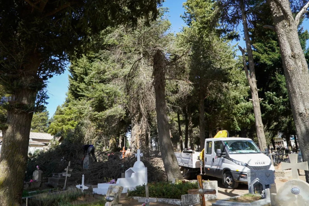 Se desplomó un pino en el Cementerio Municipal y cierran el acceso de forma preventiva
