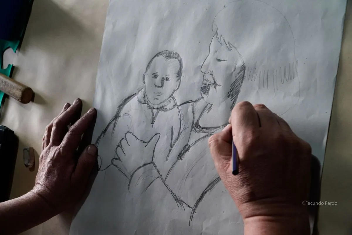 El dibujo que luego será estampa.