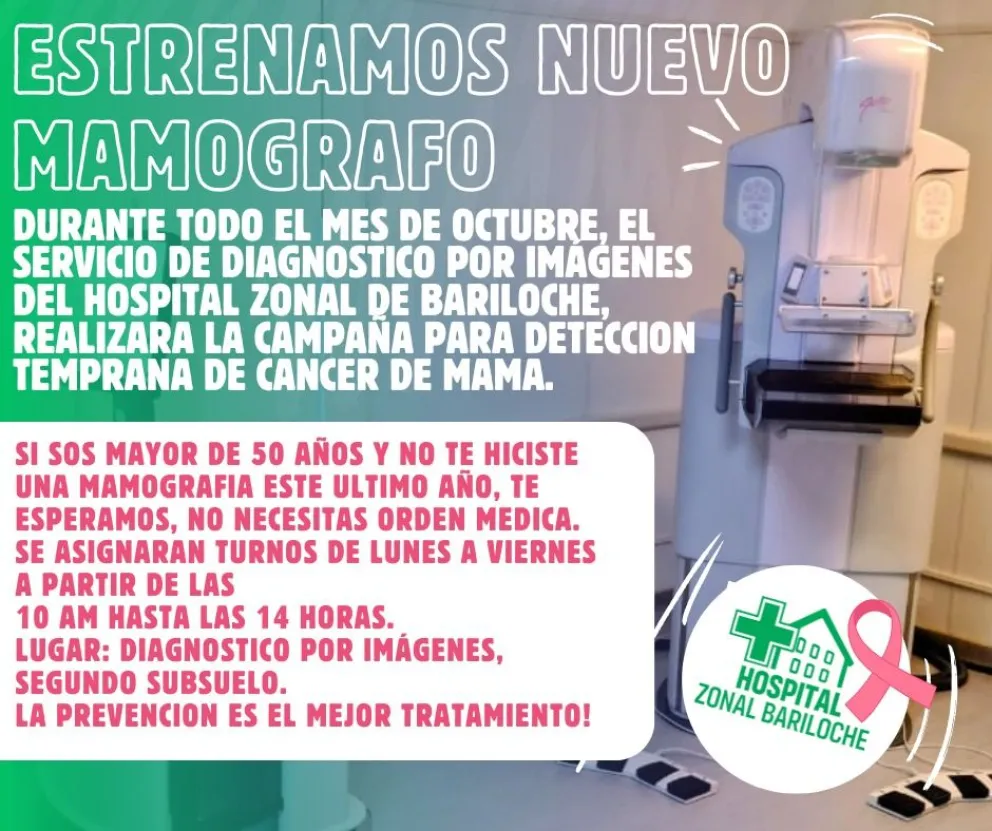 El Hospital Zonal puso en marcha una campaña de detección temprana de cáncer de mama, coincidiendo con la inauguración de su nuevo mamógrafo en el Servicio de Diagnóstico por Imágenes.