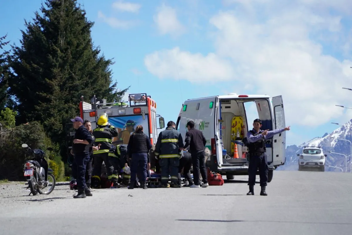 Violento choque entre un taxi y una moto en el Alto de Bariloche dejó como saldo dos heridos