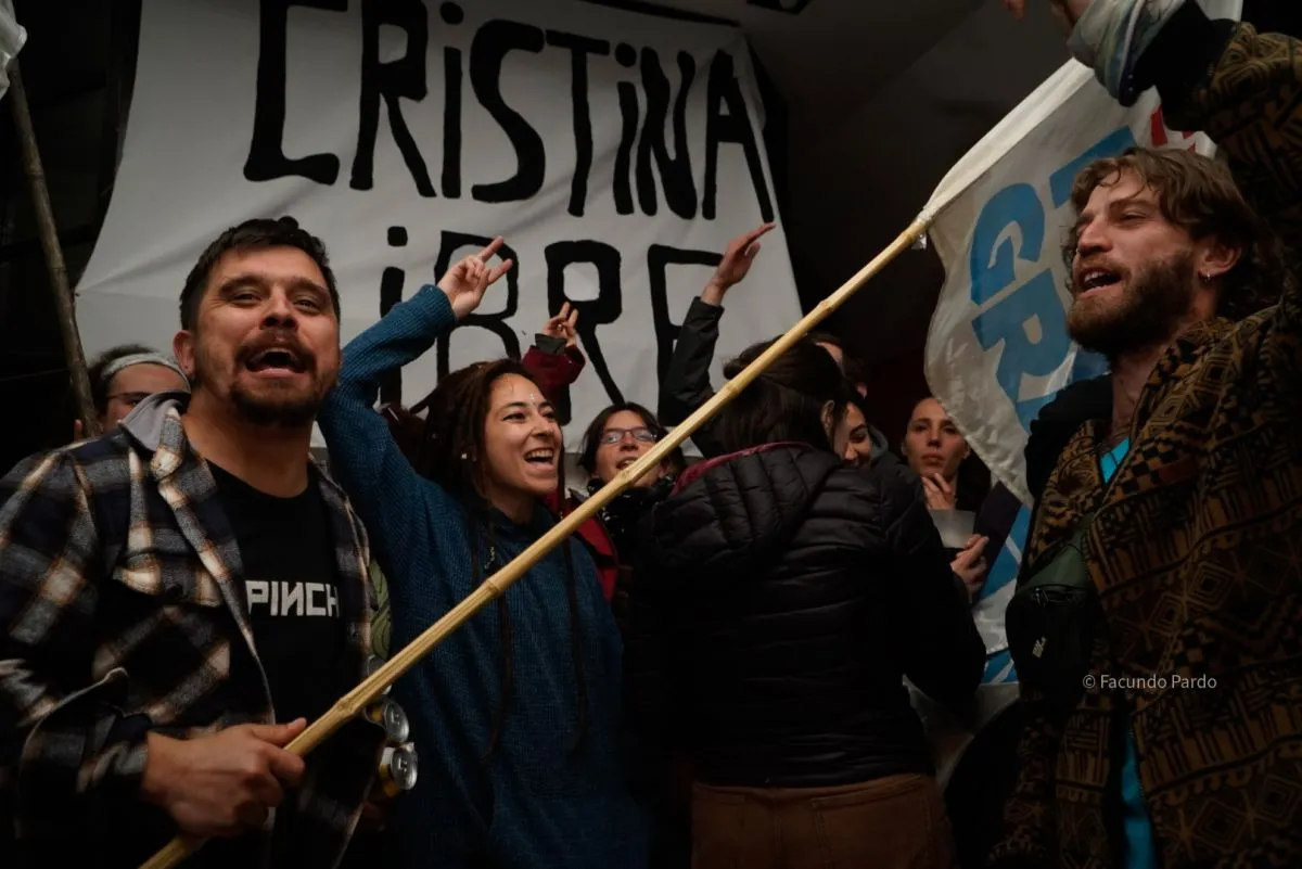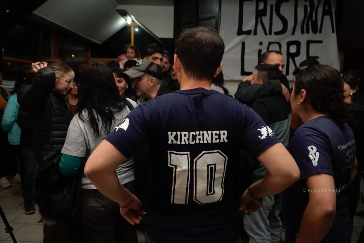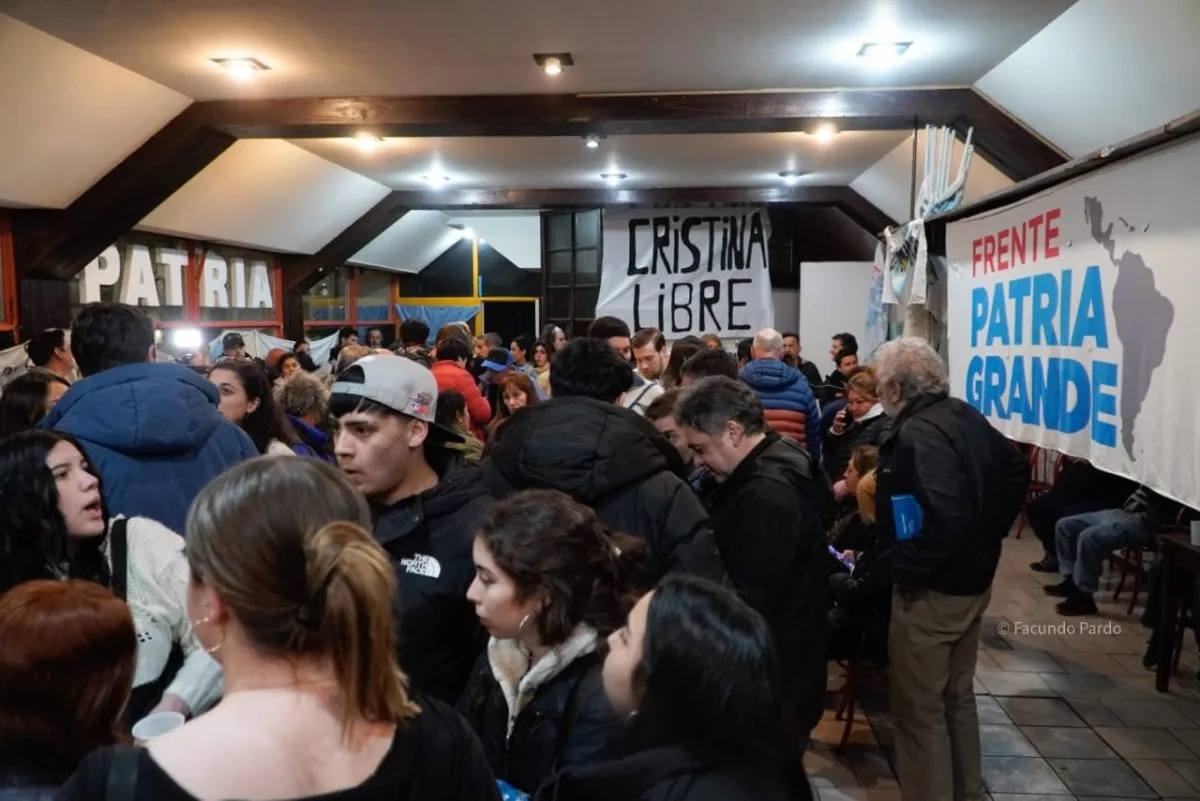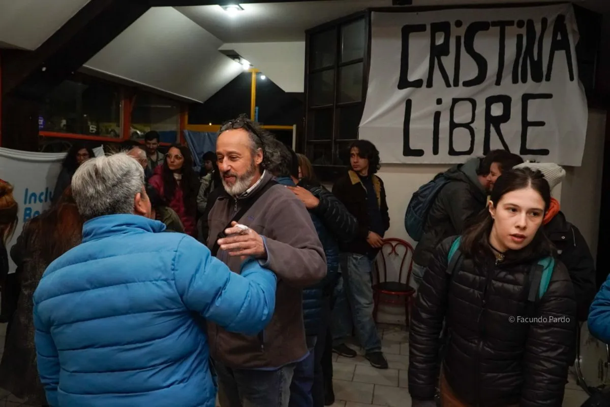 Dentro del local, aparte de una bandera con una estampa del Partido Justicialista Bariloche, había letreros del Frente Patria Grande, La Cámpora y, también, un cartel con la consigna “Cristina libre”.