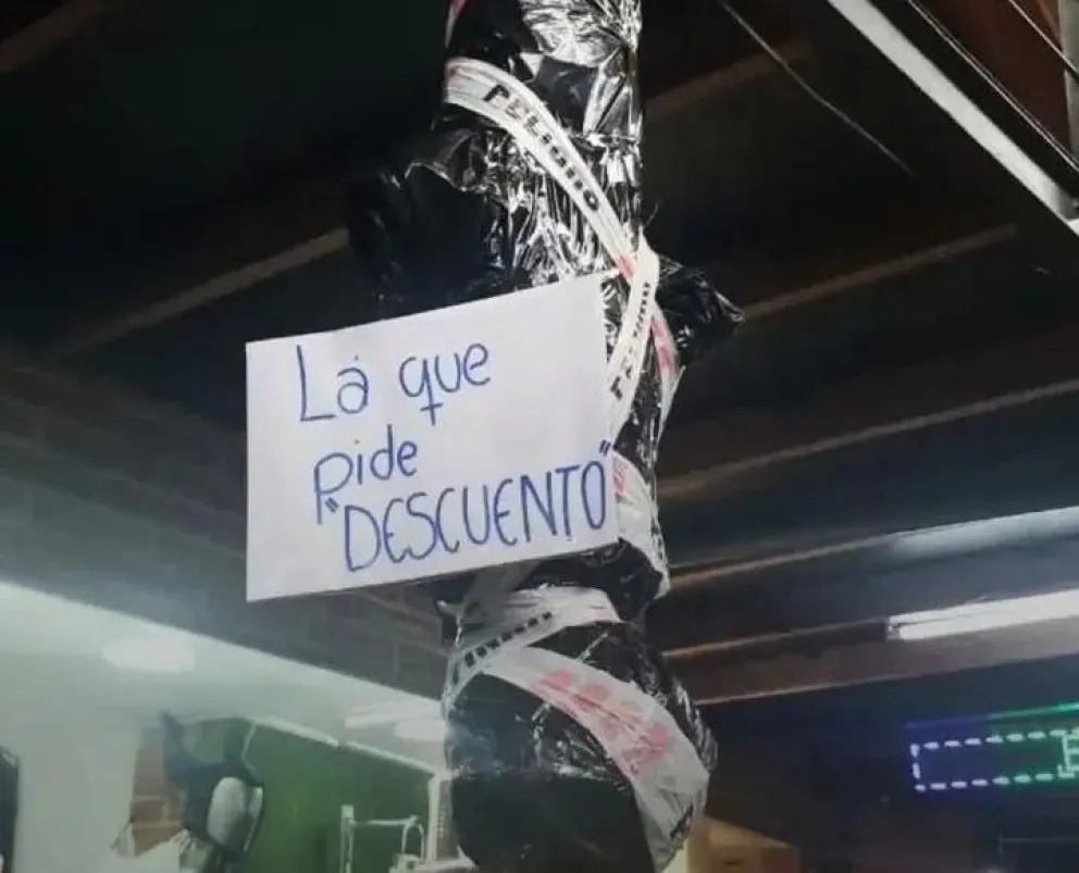 Un local de ropa de San Salvador de Jujuy generó una ola de repudio tras exhibir un maniquí colgado y envuelto en bolsas negras. Simulaba ser el cuerpo de una mujer y tenía un cartel que decía “La que pide descuento”.