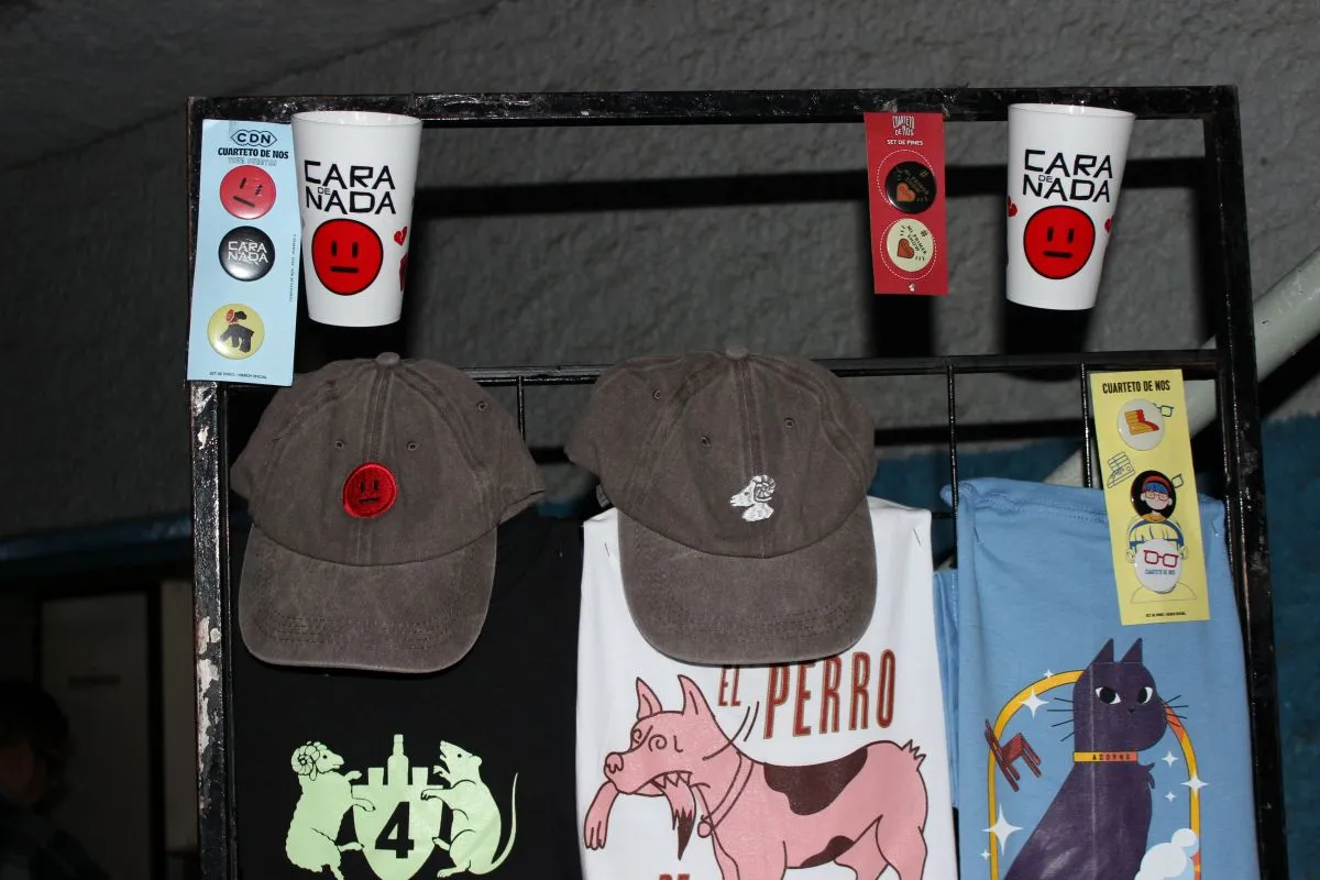 Un punto para destacar se relaciona con la gran presencia de merchandising, tanto dentro como fuera de Bomberos. Así, por ejemplo, a la salida, la calle Beschtedt mostraba un panorama repleto de venta de productos vinculados con la banda, desde pins a buzos, pasando por gorras y tazas, todo con inscripciones de frases de canciones e ingeniosas imágenes alusivas. Eso también evocó otras épocas, cuando era común que se ofrecieran artículos que tuvieran que ver con los artistas que daban un concierto. Tal vez este revival de la costumbre radique en que la sensación de acompañamiento que despierta el Cuarteto de Nos en sus seguidores impulsa a que muchos tengan ganas de ponerse “la” remera del grupo.