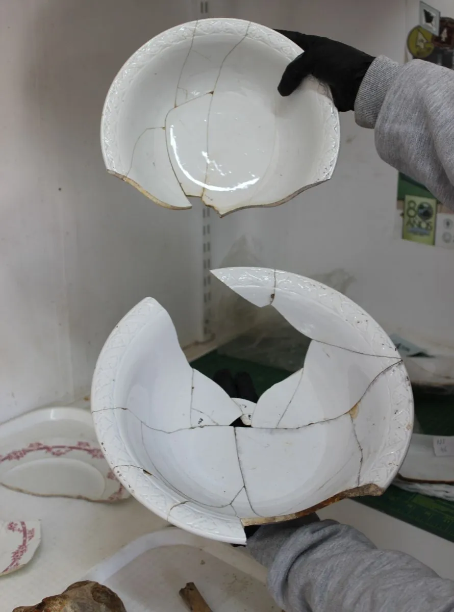 Solange, asimismo, recalca que “la pavimentación de Mitre comenzó en 1939, lo que otorgó un techo cronológico, porque estas cosas no se pueden datar por medio de carbono 14, ya que, para eso, deberían tener, por lo menos, ciento cincuenta o doscientos años, porque la desviación estándar (la dispersión de los resultados de la datación) es muy grande”. Sin embargo, al contar con aquella fecha de comienzo de las labores para el trazado de la calle, así como otras estrategias utilizadas para datar, los especialistas pudieron obtener mucha información sobre los elementos descubiertos. “Las cosas que se encontraron van desde fines del siglo XIX hasta mil novecientos treinta y pico”, asevera la arqueóloga, quien devela que, en la vajilla, por ejemplo, se ven sellos que brindan gran cantidad de información, porque refieren a las fábricas de donde provenían. En ese punto, especifica que, si bien se hallaron productos de Buenos Aires, la mayoría tiene origen europeo. Como curiosidad, revela que, en un plato fabricado en el exterior, se ve la Catedral de Buenos Aires y la Casa Rosada. “Se debe haber hecho para 1910, por los cien años de la Revolución de Mayo”, teoriza la arqueóloga. Cabe resaltar que, cuando se habla de estas piezas, hay que tener en cuenta que, mayormente, estaban rotas (no debe olvidarse que se arrojaron a un basurero). Por tal motivo, sobre varias, se hicieron labores de reconstrucción.