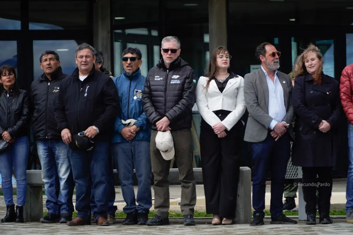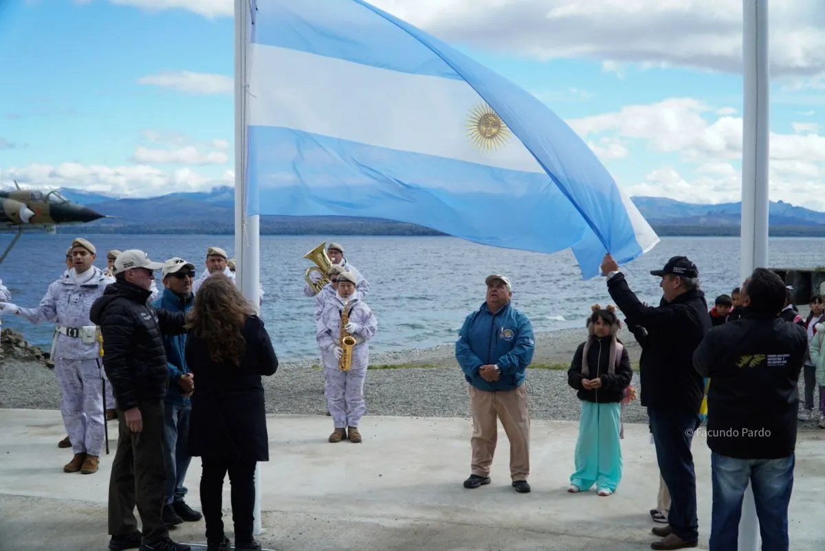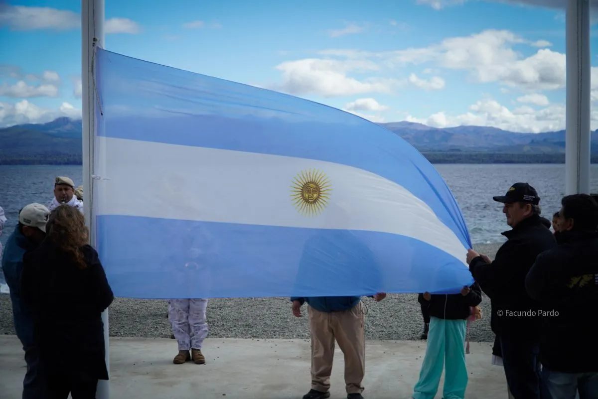 Con el Nahuel Huapi de fondo, izaron la bandera argentina por el Día de la Soberanía Nacional. Fotos: Facundo Pardo