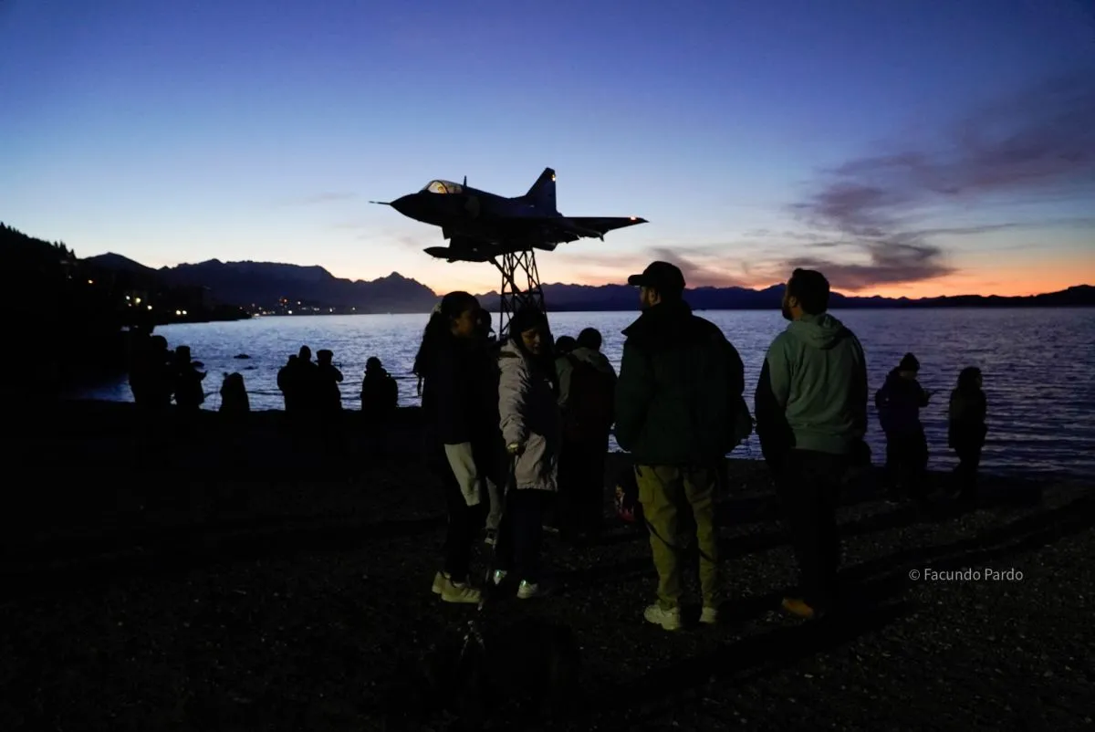 El avión Mirage III, sobre el espejo de agua, “volando” encima del Nahuel Huapi en dirección a Malvinas, ya pasó a ser un nuevo clásico de la “postal” de Bariloche. Todos los que pasan por la ciudad desean sacarse una foto con la aeronave. Y los habitantes recuerdan con orgullo el día de su arribo al lugar, con una escolta popular que lo acompañó durante gran parte del recorrido, el cual arrancó en el Aeródromo Nahuel Huapi, donde el aparato había estado “descansando” a la espera de su traslado definitivo.