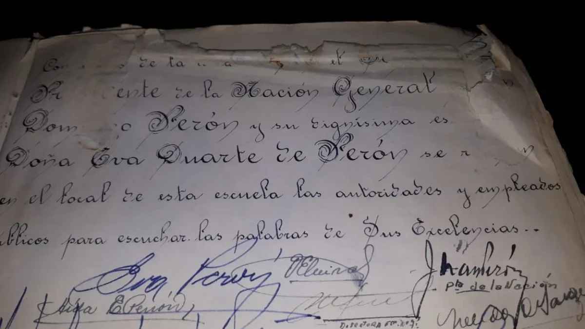 Fue en 1948 cuando se colocó la piedra fundamental de su edificio actual, y al año siguiente, según cuenta María Inés, se inauguró. Cabe resaltar que el libro histórico de la escuela guarda las firmas del entonces presidente, Juan Domingo Perón, y su esposa, Eva Duarte.