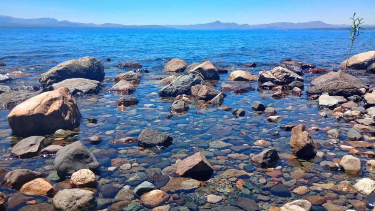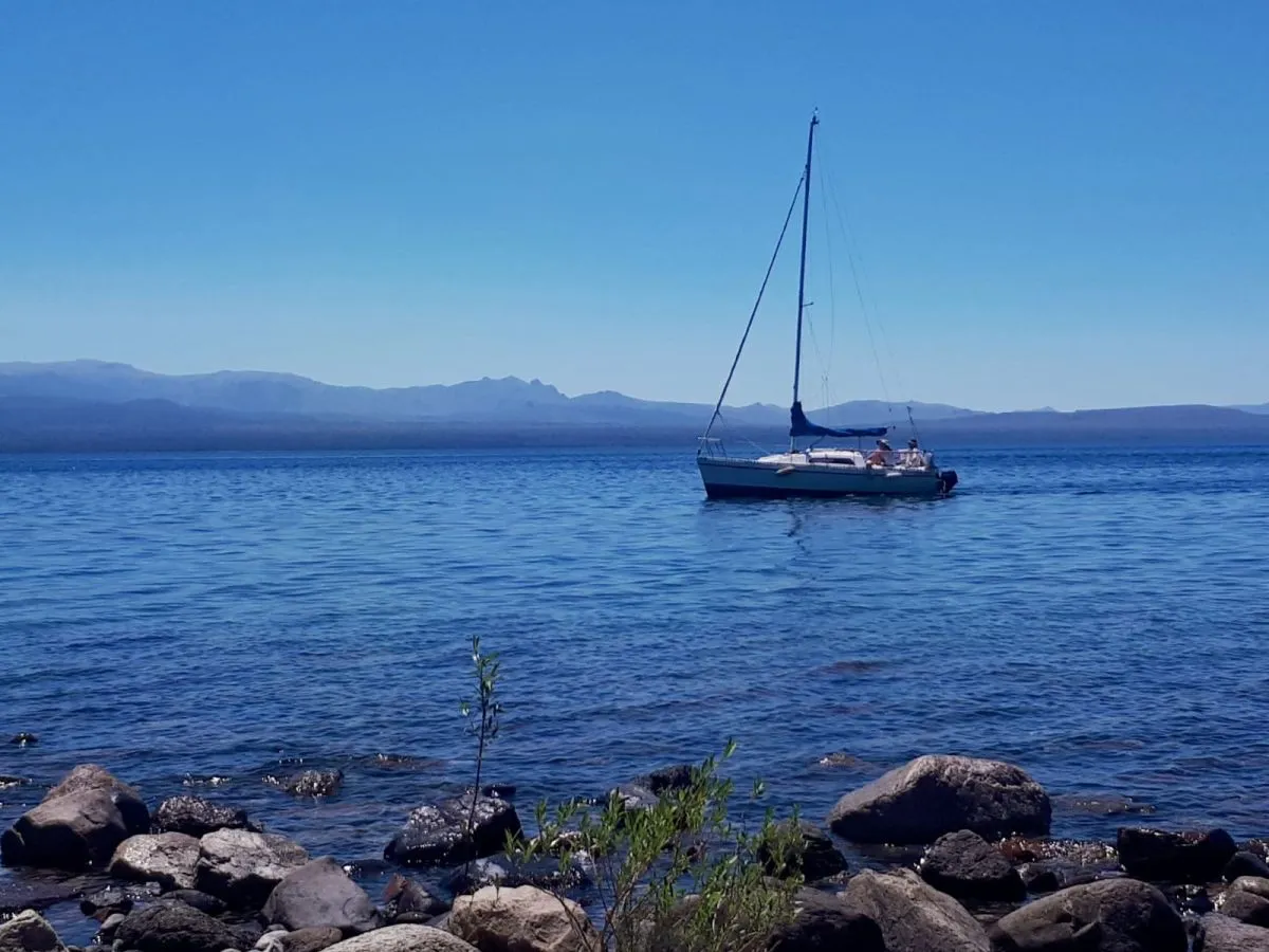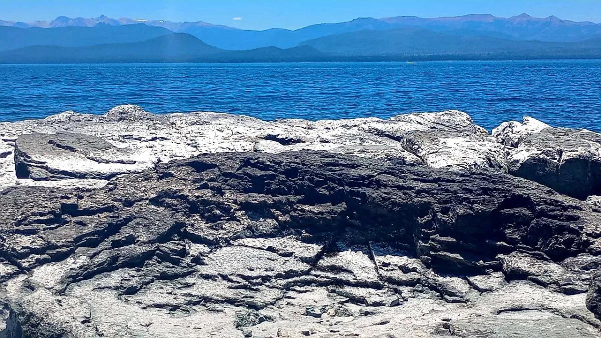 Más allá de lo que sucedía en la orilla, el lago también deparaba una vista destacada, con veleros y lanchas que lo surcaban (cabe recordar la cercanía del Club Náutico). Y, claro, no faltaban los turistas que miraban el espejo de agua con la esperanza de divisar al Nahuelito… pero lo hacían parados sobre un paisaje digno de la Luna o de Marte.