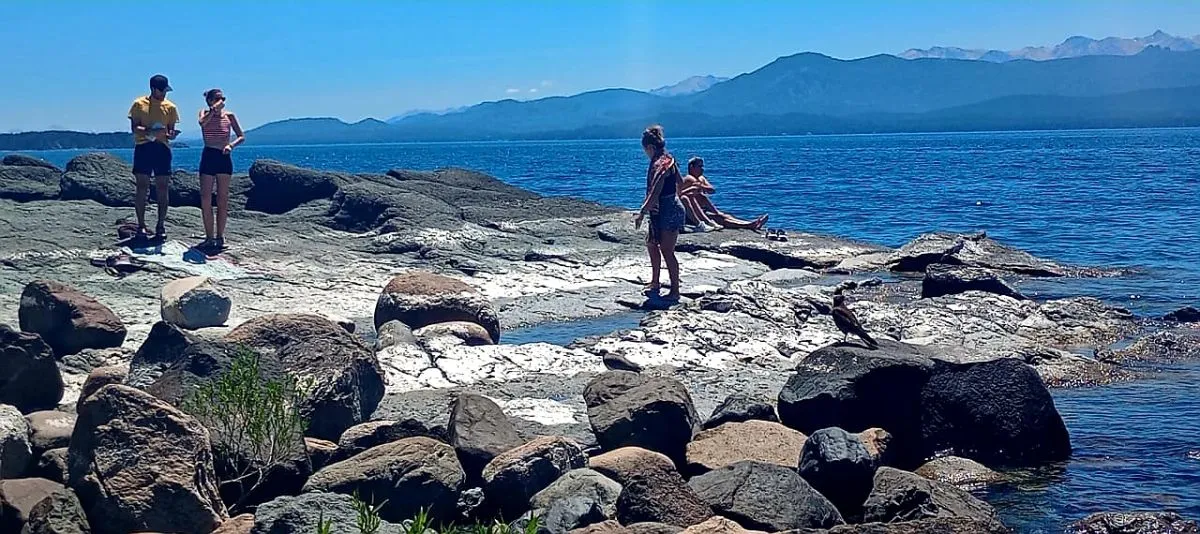 Pero, más allá de esos tonos, está la disposición de las rocas, que en algunos espacios parecen conformar pequeños anfiteatros. Esa característica resulta propicia para utilizar las piedras como asientos, y así regocijarse tanto del espectáculo lacustre como aprovechar la “silla” natural para sentarse a tomar algo. Quizá esa sea una de las razones de que el sitio sea uno de los preferidos por los barilochenses que optan por una jornada de picnic/merienda. Además, apenas cruzando la calle, se ubica un local de una cadena de supermercados, lo que resulta óptimo para conseguir lo necesario si hubo algún olvido a la hora de alistar el bolso matero. Asimismo, por la zona, sobre todo en esta época del año, abundan los carritos gastronómicos, que también convocan a disfrutar de algo al paso.