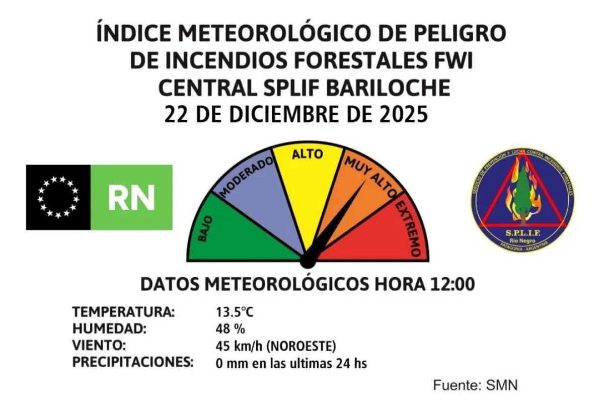 El índice en Bariloche y El Bolsón es muy alto. Se desaconseja hacer fuego incluso en lugares habilitados porque el riesgo de propagación de incendios es elevado.