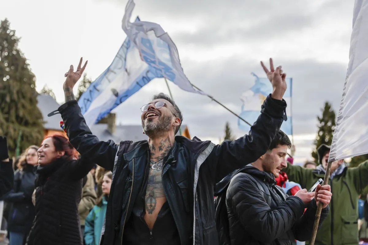 Cientos de seguidores se concentraron en el Centro Cívico  de Bariloche en repudio ante la proscripción judicial contra Cristina Fernández de Kirchner. Asociaciones gremiales, sindicatos, organizaciones sociales, docentes y jubilados se hicieron presentes ante la convocatoria nacional en total rechazo por la detención y condena para Cristina Fernández de Kirchner. Foto: Euge Neme