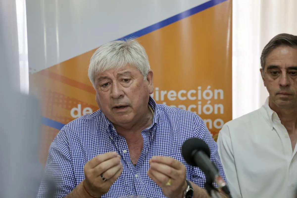 El intendente Walter Cortes en conferencia de prensa, donde anunció la nueva tarifa para el Cerro Catedral. Foto: Euge Neme