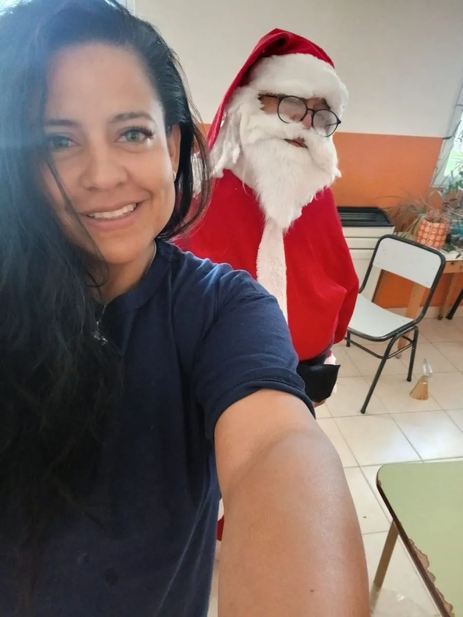 Soledad con un Papá Noel Patagónico