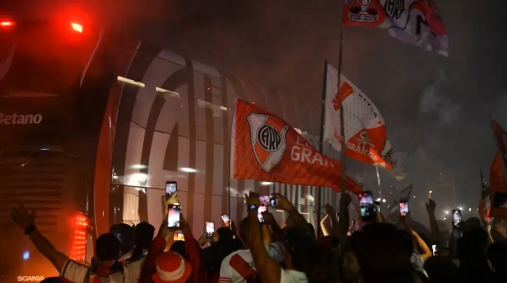 El plantel de River llegó este sábado a San Martín de los Andes y   fue recibido por miles de fanáticos, que coparon las calles para saludar a los jugadores y al director técnico, Marcelo Gallardo. La llegada de la delegación a la Patagonia se demoró hasta la madrugada pero no impidió que más de 10.000 personas esperaran el paso del micro.
