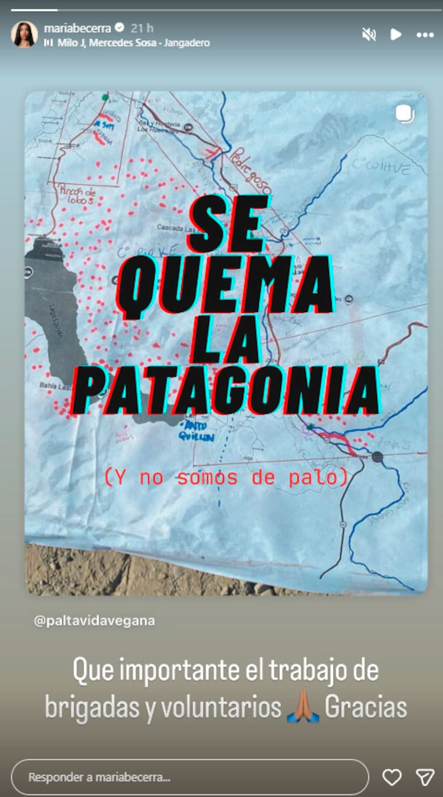 La acción no fue anunciada por la propia artista ni presentada como una movida pública. Por el contrario, se conoció a partir del agradecimiento de quienes trabajan activamente para sostener a las brigadas autoconvocadas que operan en la zona de Chubut. En un posteo que rápidamente comenzó a circular, la activista ambiental que encabeza la colecta dejó un mensaje claro y directo: “Gracias María Becerra por la difusión y el aporte”.