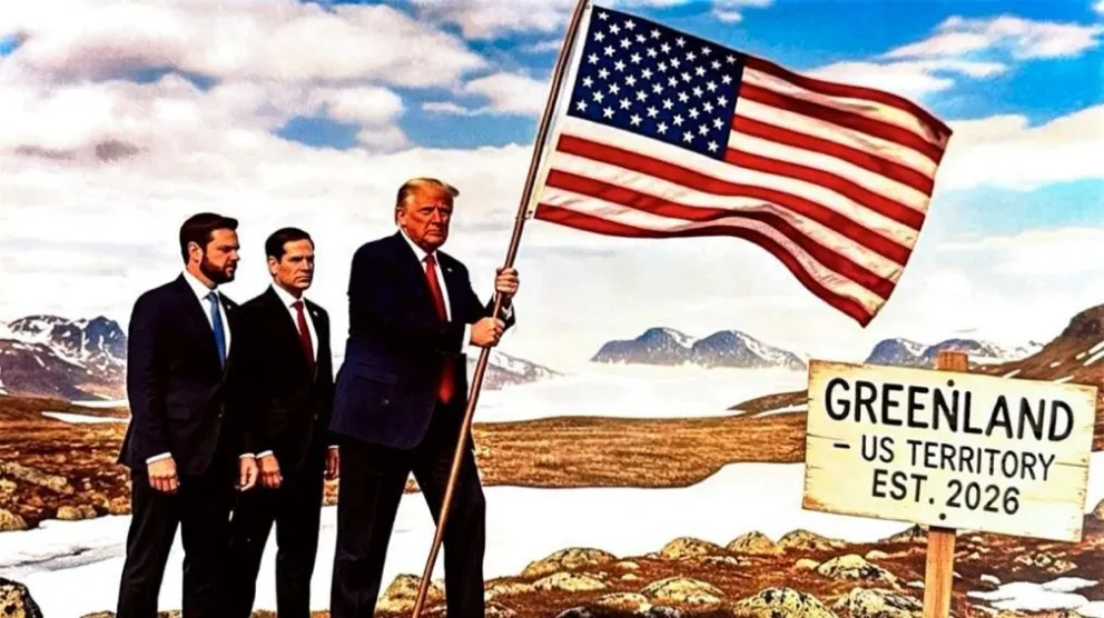 La imagen lleva impreso un llamativo cartel que proclama: “GROENLANDIA - TERRITORIO DE ESTADOS UNIDOS EST. 2026”. Este acto, aunque meramente simbólico en apariencia, ha suscitado reacciones diversas entre los observadores políticos y los medios de comunicación de todo el mundo.