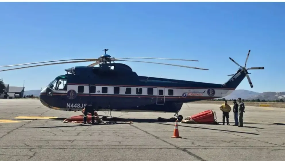 El helicóptero de alta capacidad que se incorpora para el combate de incendios forestales es una herramienta inédita en la Patagonia, pensada para operar en condiciones reales del territorio. Se trata de una aeronave pesada y de gran potencia, con capacidad de carga de 4000 kilos, preparada para volar incluso con ráfagas de hasta 90 kilómetros por hora, capaz de trasladar entre 17 y 19 combatientes hacia zonas de difícil acceso y de realizar descargas aéreas de entre 4000 y 4500 litros de agua para el ataque inicial del fuego. Además, permite transportar equipamiento, bombas y materiales a sectores donde el acceso terrestre es limitado.