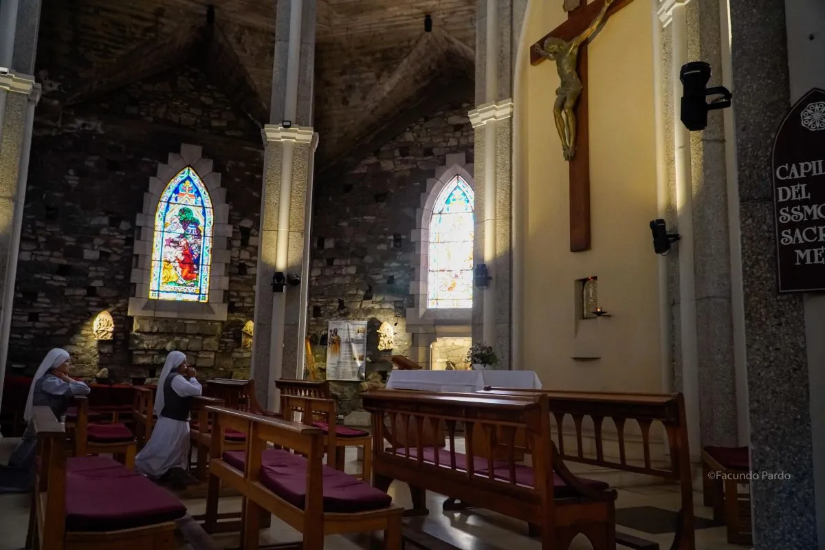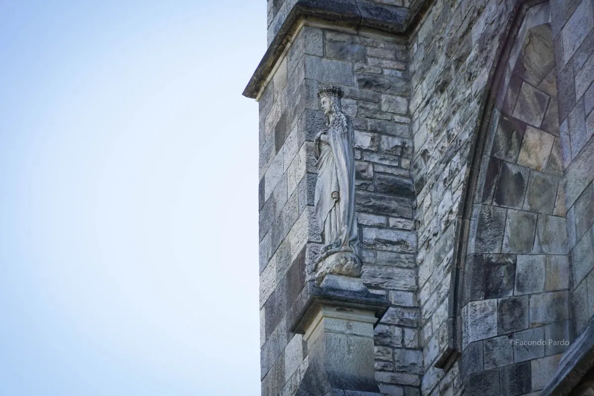 “Tampoco hay un arco que nos dé la bienvenida con ángeles y santos; si se compara con las catedrales de Europa, acá no está esa ornamentación. También, en las gárgolas, que tienen un número de cincuenta, faltan las figuras míticas o monstruos”, expone, y explica qué significado tendrían esas criaturas de las que el templo barilochense carece: “Los arquitectos no se ponen de acuerdo si era para marcar la diferencia entre lo profano —la historia humana— y lo sagrado, o para advertir: ‘Hasta esta puerta llega el mal, porque lo que acá dentro se vive tiene que ser sagrado’”.