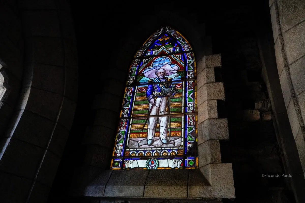 En el primer sector al que se accede en la Catedral, en una especie de espacio abovedado, pueden verse vitrales donde aparecen Nicolás Avellaneda y Julio Argentino Roca. “Se lo ve a Avellaneda aprobando el avance sobre la Patagonia, que luego continuará Roca”, detalla Roberto.