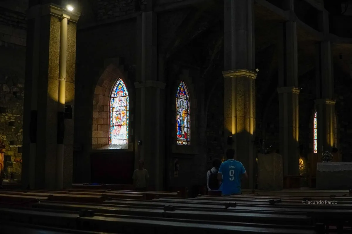 Antes de salir del templo, Roberto mira hacia el techo y dice: “La Iglesia católica se representa con la barca de Pedro, el primer papa, y acá, justamente, la parte superior tiene forma de quilla de barco, por eso se habla de nave central y nave lateral”. Después, afuera, sigue brindando más detalles...