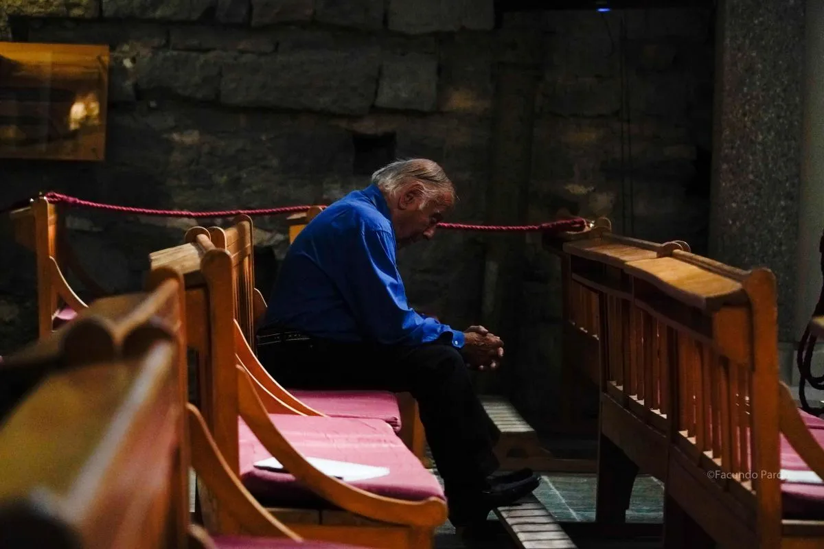 Junto a una de las representaciones del vía crucis, cuelga una foto del padre Juvenal Currulef, quien tuvo un rol comprometido en Bariloche. Justamente, Roberto explica que la presencia de la fotografía se debe a que el artista lo incluyó en su obra (en la dedicada al momento en que Cirineo, un labrador que volvía del campo, ayudó a llevar la cruz de Jesús). “Santana asistía a misa en la iglesia de Virgen Misionera, donde estaba Currulef”, puntualizó el guía.