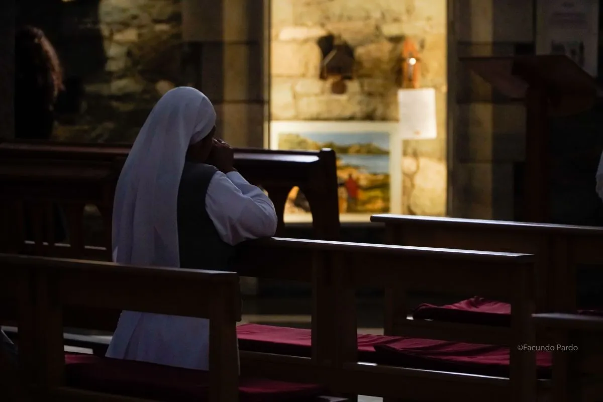 En diagonal a esa cruz, se halla un vitral muy particular, aquel en el que aparece Jesús. “¿Por qué está detrás del altar y parece escondido?”, pregunta el guía, para enseguida él mismo responder: “Porque los primeros rayos de luz entran por ahí. Para el monacato, la salida del sol representa la resurrección de Jesús”.