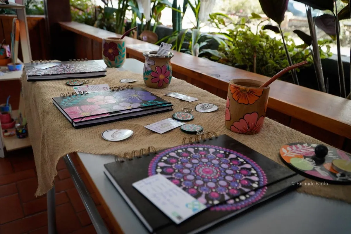 Ayelén, en tanto, pinta artesanalmente diversos elementos, como agendas, mates y demás. “Empecé a hacerlo como terapia después de una lesión fuerte”, indicó, en referencia a una herida en la rodilla. “Entrenaba y bailaba mucho”, comentó. Si bien no realizaba ninguna actividad en forma profesional, practicaba boxeo taekwondo y ciclismo, entre otras cosas. “Ahora puedo moverme, pero tengo que hacer movimientos más suaves de lo que estaba acostumbrada”, apuntó.