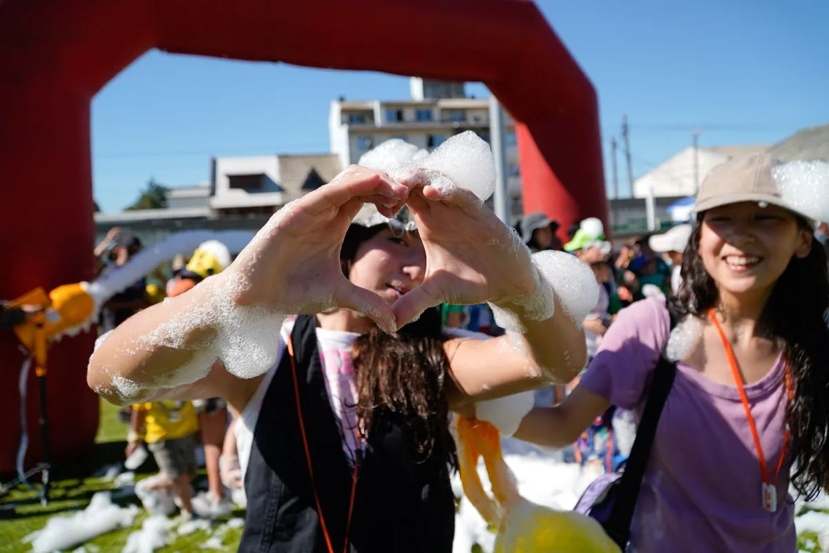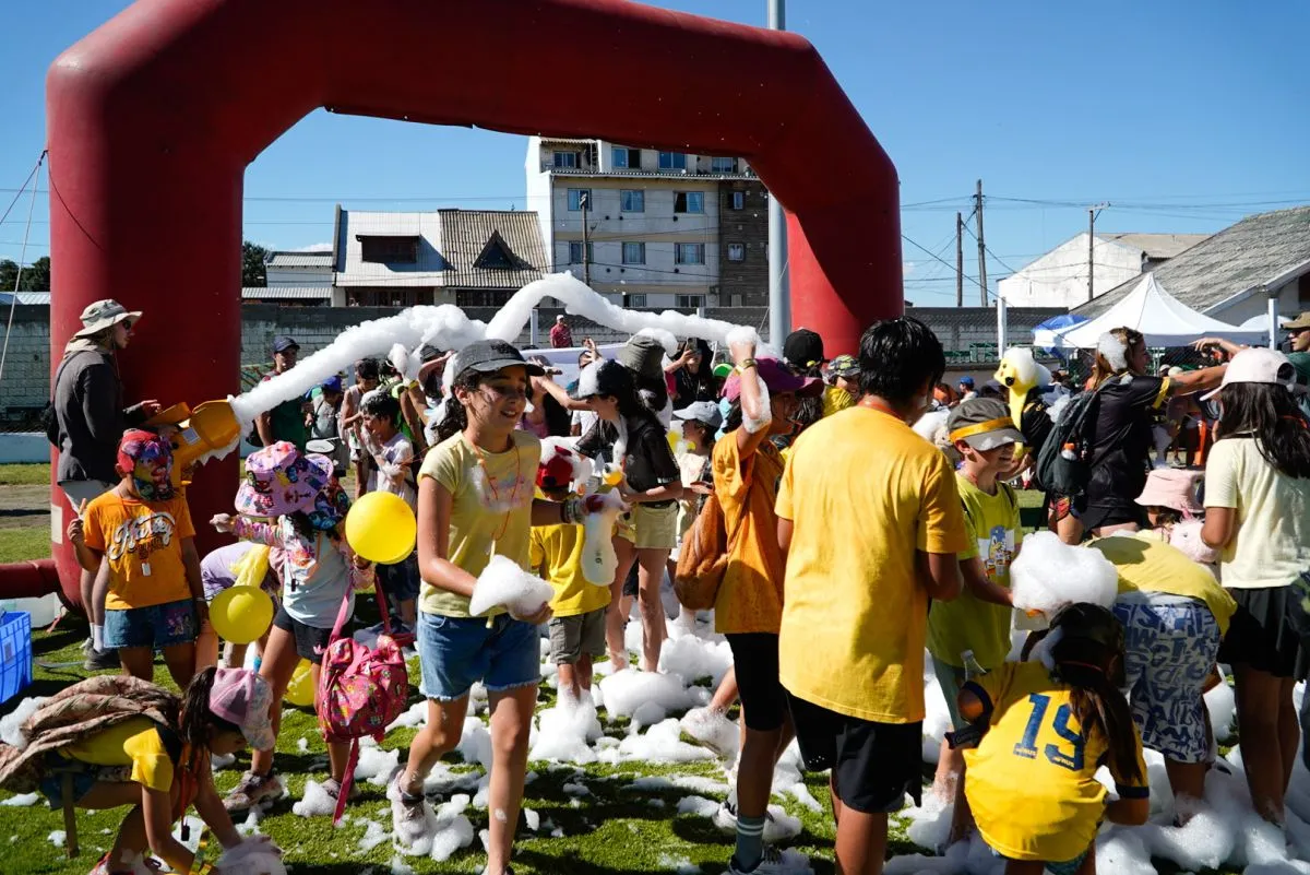 Tras la caminata desde el Gimnasio N° 1, en el Estadio Municipal se vivieron momentos de gran diversión, a partir de diversos juegos. Incluso se disfrutó de una especie de adelanto del carnaval, a pura espuma.