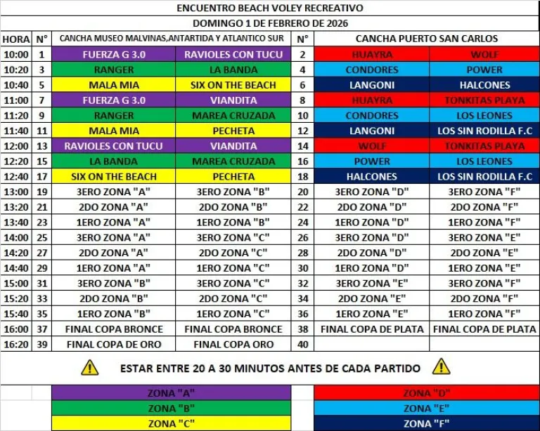 Esta nueva propuesta de la Subsecretaría de Deportes, en este caso frente en el cajón de arena ubicado frente al Centro Cívico, generó gran convocatoria y , ya con los cupos completos, se espera la participación de 18 equipos en busca de la Copa de Oro, Plata y Bronce.