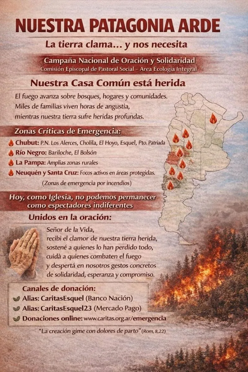 En el marco de la grave situación que atraviesan distintas zonas del país por los incendios forestales, la Iglesia en Argentina impulsa una Campaña Nacional de Oración y Solidaridad, con el objetivo de generar conciencia ambiental, acompañar a las comunidades afectadas y canalizar la ayuda de manera organizada.