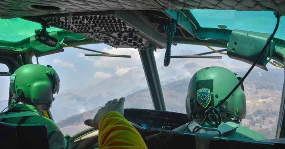 El combate cuenta con amplio apoyo aéreo, incluyendo helicópteros con helibalde (Bambi), aviones hidrantes AT-802 y Fireboss, un avión observador y medios del Ejército Argentino, lo que permite sostener las tareas en sectores de difícil acceso.