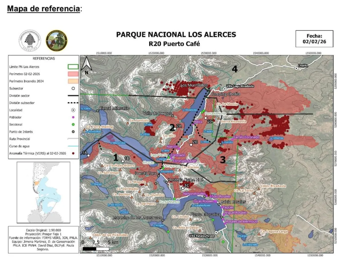 El operativo para combatir el incendio forestal en el Parque Nacional Los Alerces continúa enfocado en los sectores con mayor actividad del fuego, mientras las condiciones climáticas generan expectativas moderadas sobre su comportamiento. El área afectada alcanza actualmente unas 15 mil hectáreas y el trabajo se sostiene mediante un amplio despliegue de recursos humanos y materiales.