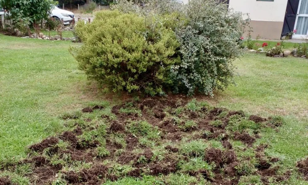 Además del riesgo vial, los vecinos advirtieron sobre los daños que estos animales provocan en los espacios verdes. En los videos y fotografías enviados se puede ver cómo quedan los jardines y parques tras el paso de los jabalíes, con césped removido.