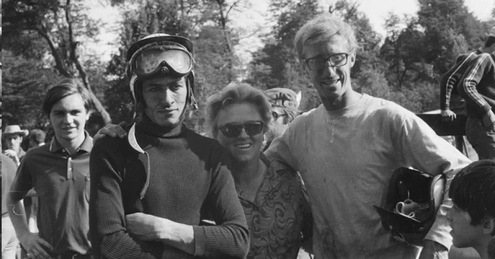 “El comienzo del motocross en Argentina tiene su origen en Villa La Angostura, a comienzos de los años 60”, relata al reconstruir aquella escena fundacional. Por entonces, el belga Jean-Pierre realizaba saltos desde el muelle hacia la costa como parte de un espectáculo improvisado para turistas que llegaban en excursiones lacustres. “Ahí empezó a correr el rumor de que había un gringo loco que saltaba del muelle a la costa. Eso fue a mediados del 63 o 64, y ahí arrancó toda la historia”, recuerda.