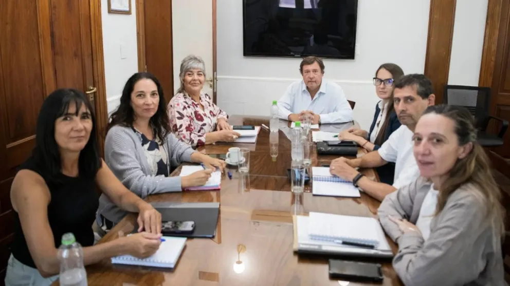 Durante el encuentro, participaron la Secretaria de Educación, Silvia Arza; los vocales gubernamentales del Consejo Provincial de Educación, Romina Procoppo y Fabio Sosa; la Secretaria del Consejo Provincial de Educación, Claudia Tejeda; y la Secretaria de Administración, Mónica Temprano.