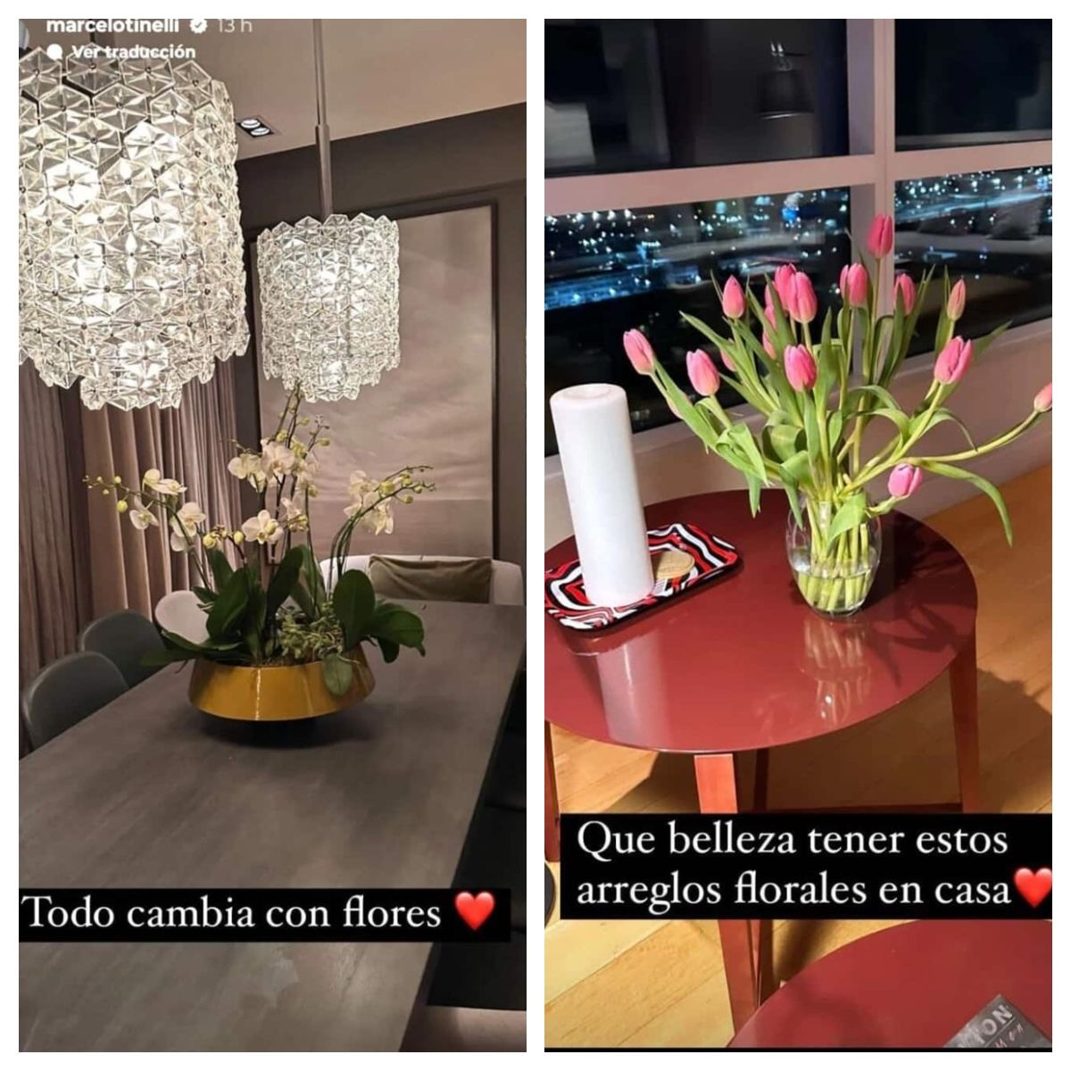 En distintas publicaciones en sus redes sociales, Tinelli dejó entrever parte de la intimidad de su hogar. Con una superficie de 530 metros cuadrados, el departamento se caracteriza por sus enormes ventanales, que permiten el ingreso de luz natural durante todo el día y regalan vistas privilegiadas de la ciudad.