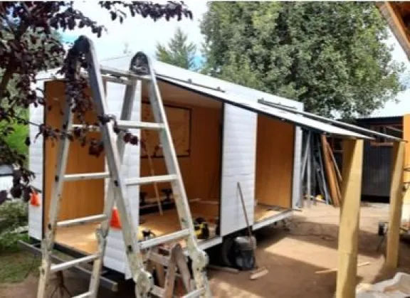 La foto registra el momento en que se construía la tienda móvil (imagen gentileza).