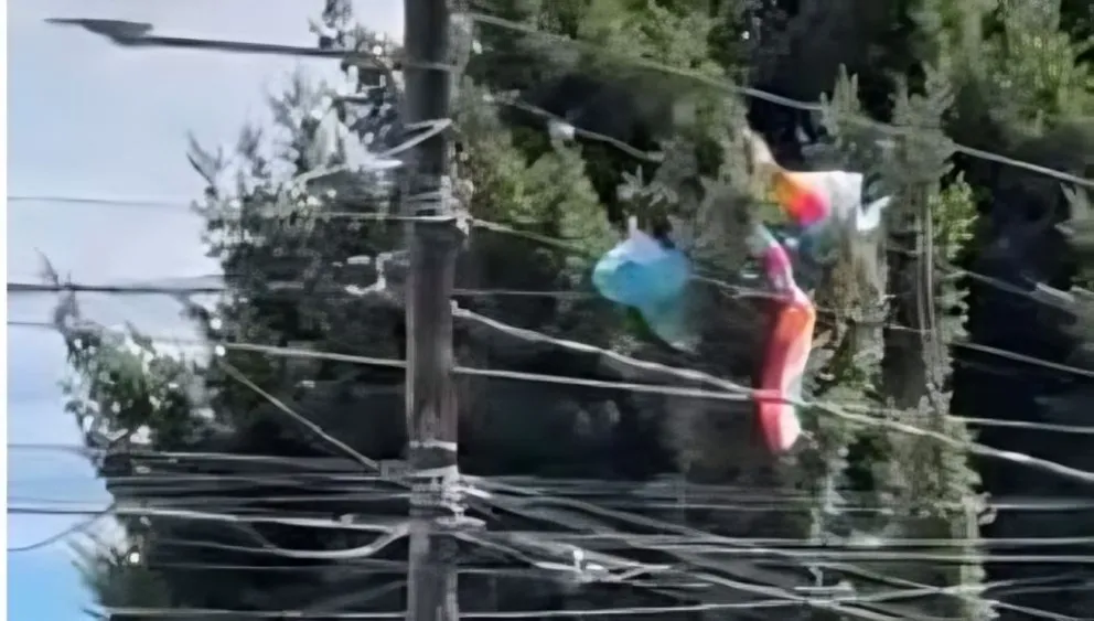 El hecho se registró en el kilómetro 5 de avenida Pioneros, en inmediaciones al predio del Teleférico Cerro Otto. La situación (que no es la primera) generó momentos de tensión entre vecinos y automovilistas que circulaban por el sector, debido al riesgo que implica la presencia de cables energizados y elementos suspendidos en altura.