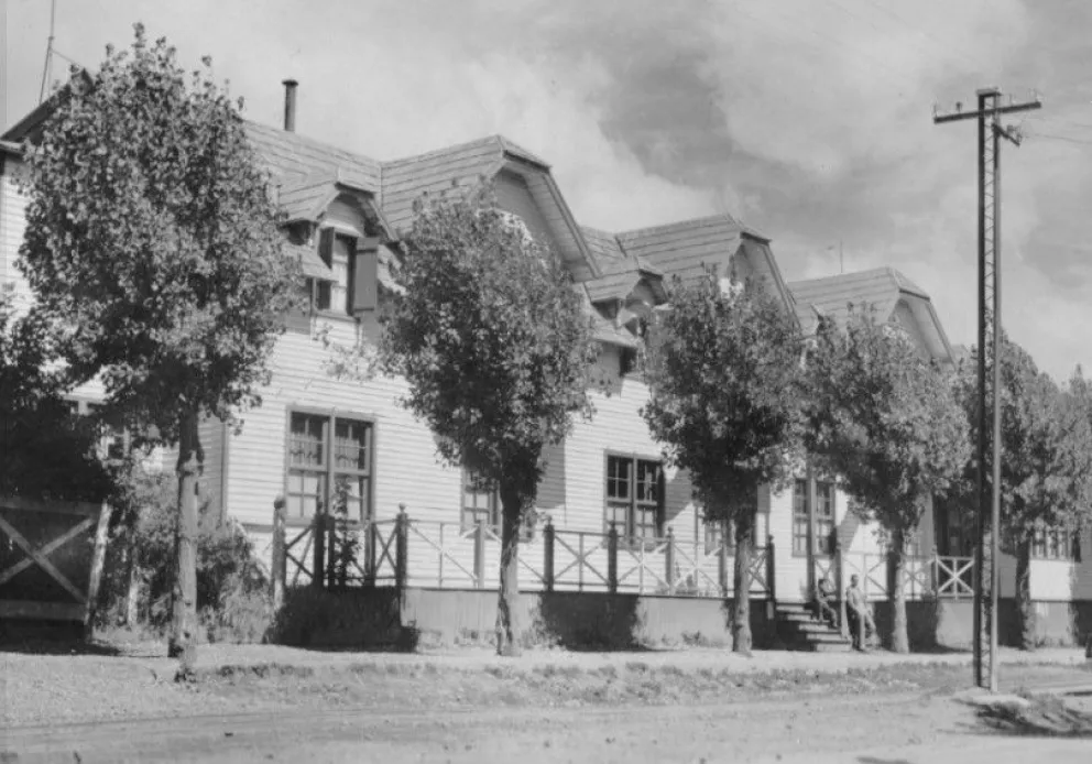 El Hotel Suizo alrededor de 1937. (Mitre al 600 del presente). Foto: Fritz Rothlisberger. Colección Familia Bachmann en Archivo Visual Patagónico.