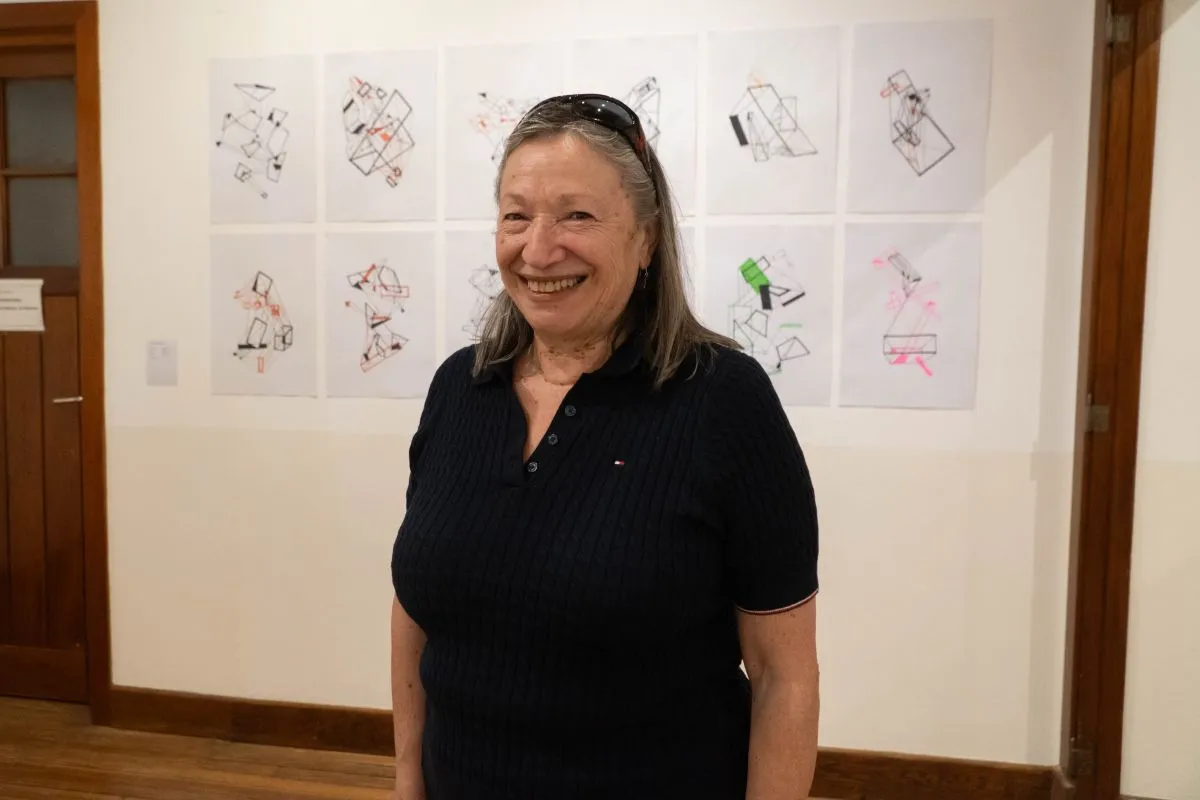 En esta ocasión, forma parte del sector colectivo, con hojas que presentan trazos rectos que se van hilvanando. “Explora la cuestión de las estructuras, desde un lenguaje despojado, trabajando con fibras, fibrones y resaltadores”, apunta Zuperovich, quien resalta: “Me interesa el artista en su integridad, porque no está separado de las otras órdenes de su vida, y ella está terminando la carrera de Antropología, y de ahí sale esa mirada reflexiva sobre las estructuras, los mandatos, y acá, en vez de explorar eso desde la palabra, lo investiga desde el discurso visual”.