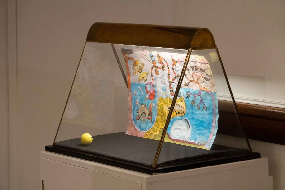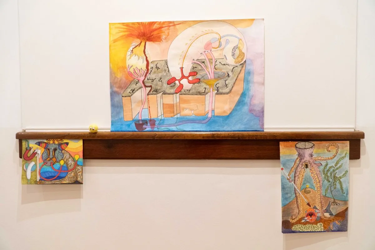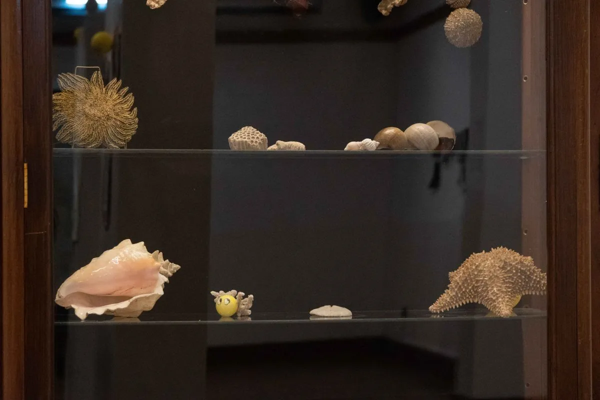 Como forma de exhibir plenamente su sendero vivencial en al arte más allá de las pinturas, a los lados del sector donde se ubican sus obras, hay dos vitrinas. En una se presentan dibujos de su etapa como estudiante de Biología, donde se presentaba el germen cultural que luego afloraría con mayor determinación. En la otra, hay una colección de invertebrados, vinculada a sus intereses de investigador.