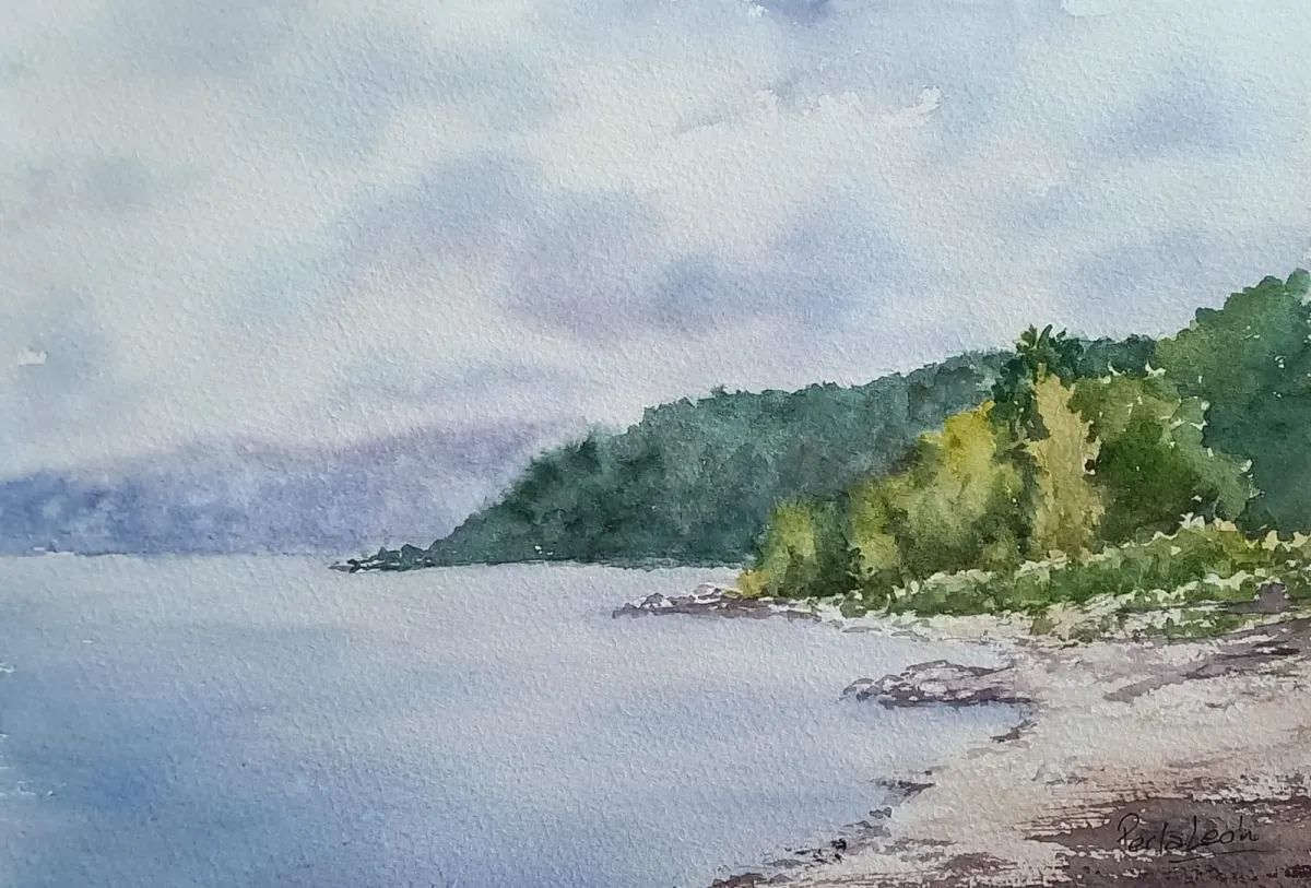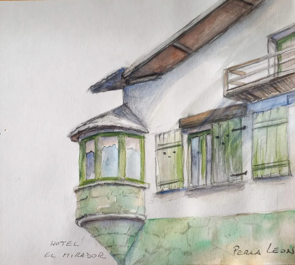 Puntualmente, Perla León trabaja con acuarela, a partir de su actividad habitual como pintora. Es decir, los suyos son croquis con alma de pequeños cuadros.