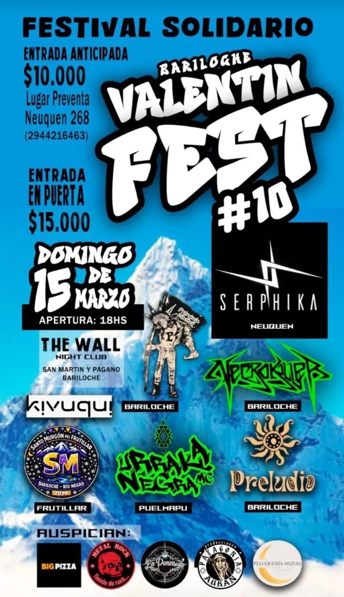 El próximo domingo 15 de marzo, será la décima edición del "Valentín Fest", a beneficio de Valentín Balmaceda.