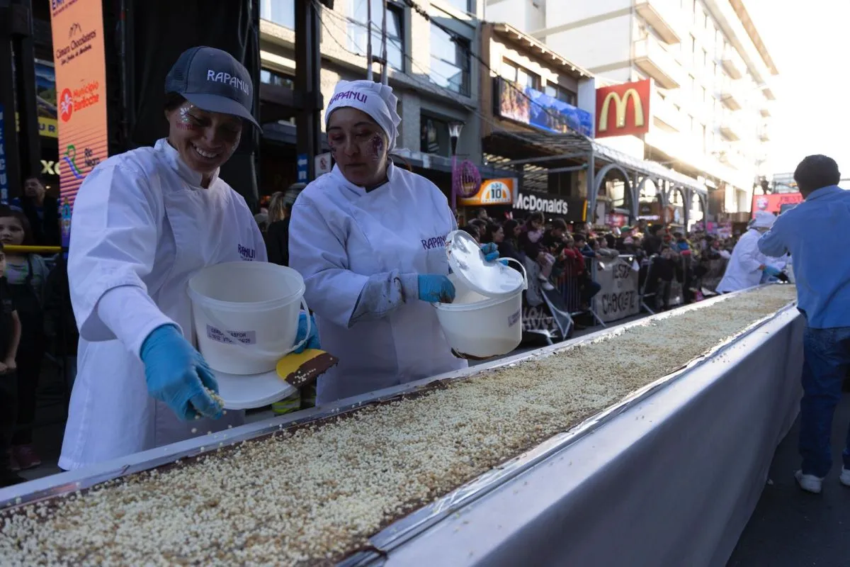 Entre las propuestas más esperadas se destaca la tradicional elaboración de la Barra de Chocolate más larga, realizada por los maestros chocolateros de Bariloche, un evento que convoca a miles de personas y que en ediciones recientes superó los 200 metros de chocolate artesanal.