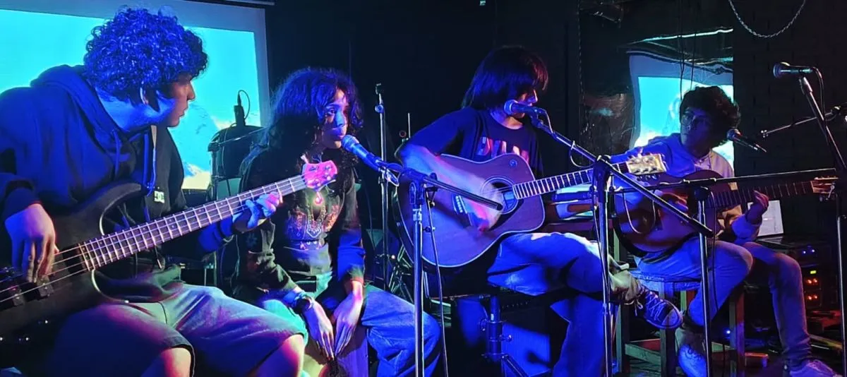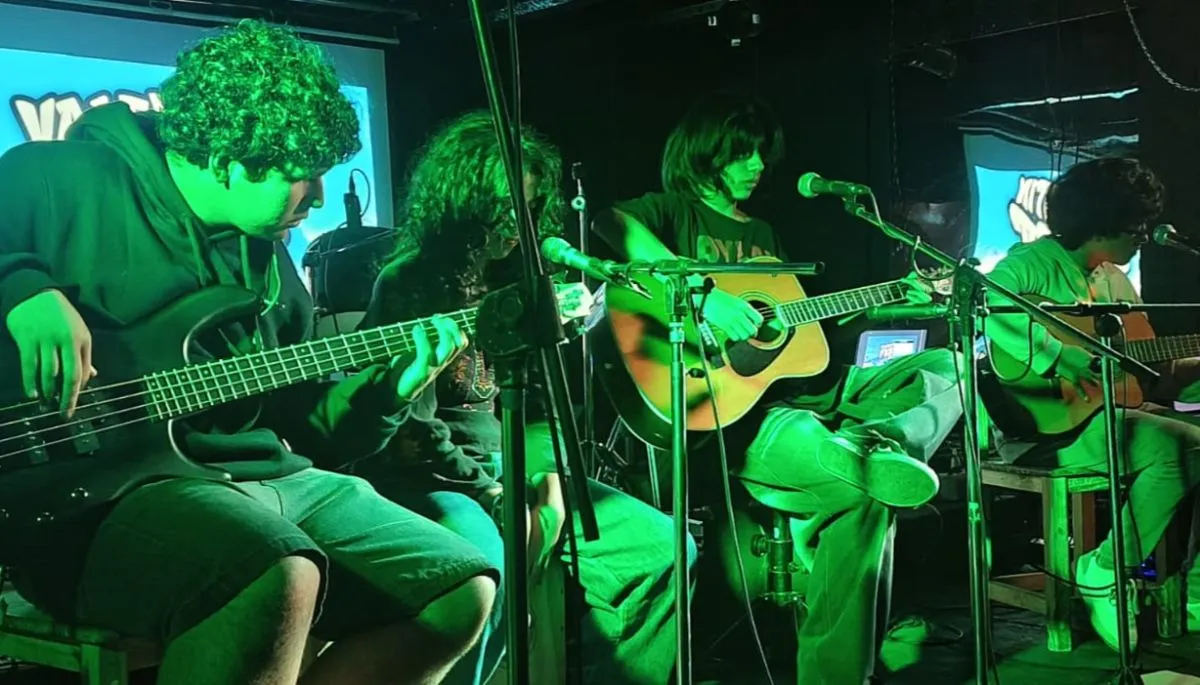Junto a Luz Viegas en cajón peruano y voz, el bajista Bautista Ivaldi, y Mati Rodríguez en guitarra y voz, Valentín despuntó su amor por las seis cuerdas y también cantó.