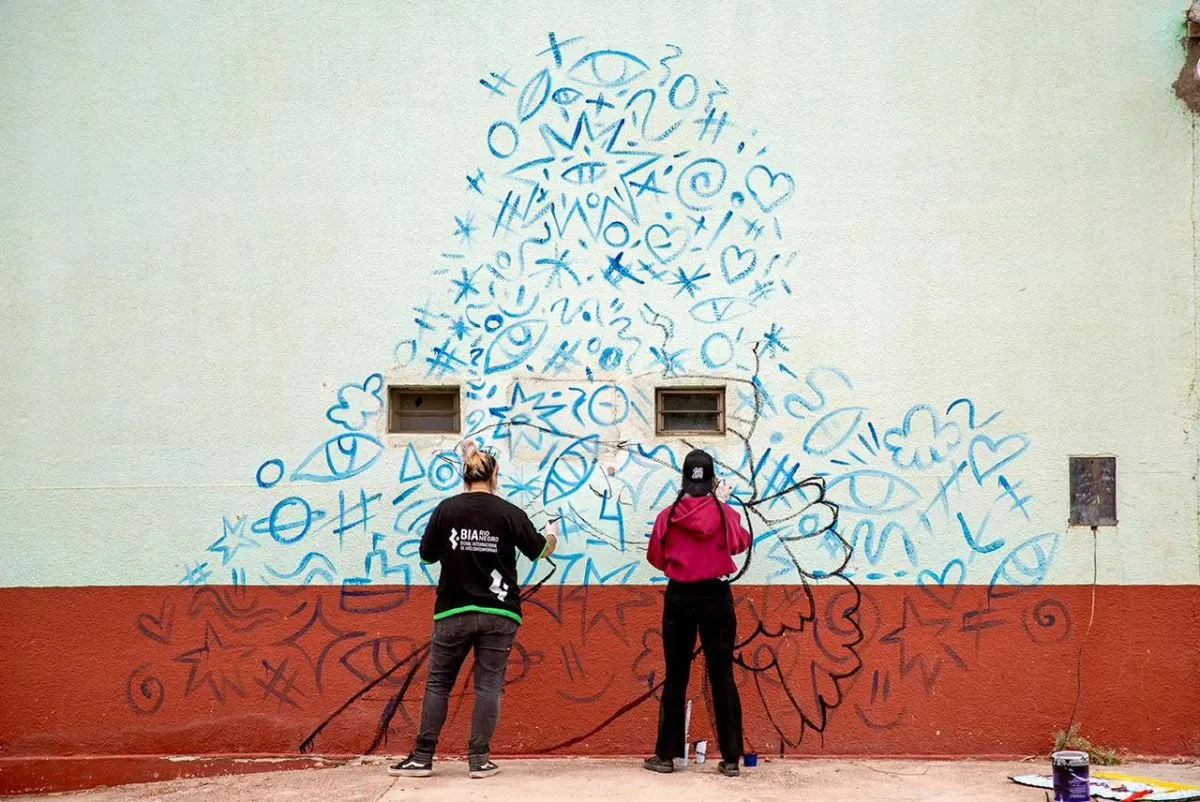 Por su parte, la obra de Julieta y Vale “pone especial énfasis en el rol de las mujeres migrantes como portadoras de memoria, cultura y fortaleza, representando el viaje, el desarraigo, la reconstrucción del hogar y los sueños de futuro. Desde una estética que combina pintura realista, recursos gráficos y pegatinas fotográficas, el mural genera un puente entre la tradición libanesa y el paisaje patagónico, promoviendo el diálogo intercultural”. Están en plena tarea.